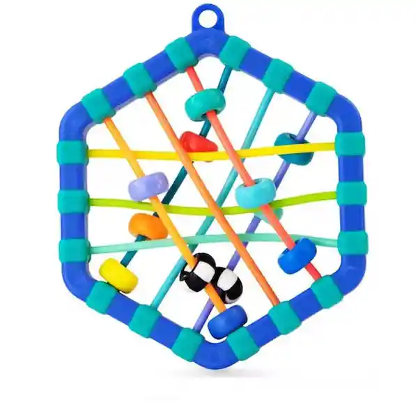 ¡Las bandas ocupadas son un juguete divertido para explorar para bebés! 6 bandas internas facilitan el agarre. Juega con las cuentas a lo largo de las bandas a medida que el bebé crece para ayudarlo a fortalecer sus habilidades motoras finas. Los bordes sobremoldeados agregan textura para los bebés en proceso de dentición. Aprende los colores a medida que el bebé crece señalando varias cuentas o bandas y nombrándolas. • ¡Mantén al bebé ocupado con este juguete! Detalles adicionales del producto: – ¡6 bandas que se extienden a lo largo del hexágono, fáciles de agarrar para el bebé y divertidas de explorar! – Las cuentas se pueden manipular de un lado a otro para desarrollar habilidades motoras finas. – Arcoíris de bandas y cuentas para aprender los colores con el bebé. – Los bordes sobremoldeados son perfectos para la dentición. – Bucle para adjuntar un enlace para on-the-go!