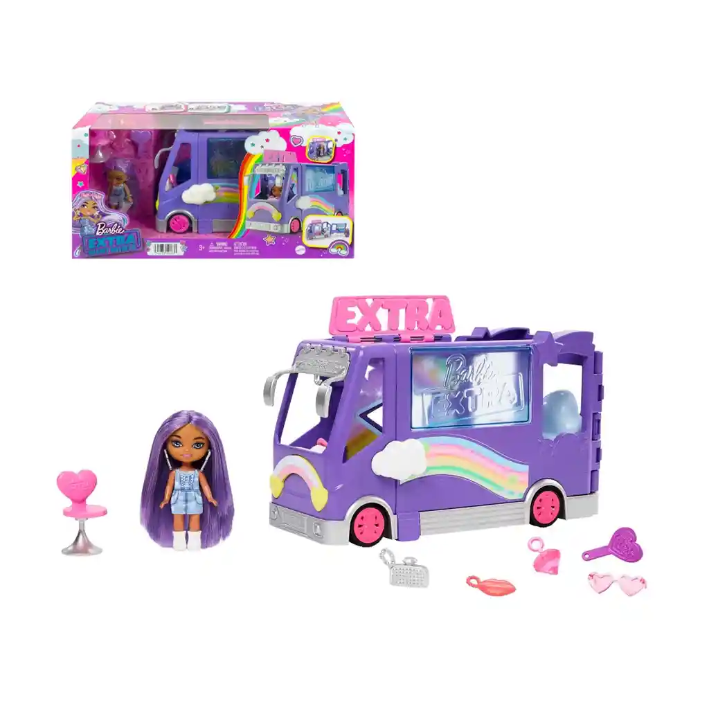 Los más pequeños de la casa podrán salir a la carretera con mucho estilo, con este sorprendente Set de Juego Camión Turístico de Barbie Extra Mini Minis. Este autobús está diseñado con detalles auténticos y altamente realistas tales como ruedas de libre acción y una cabina, además, este bus se expande hasta 38 cm de ancho revelando varias áreas de juego como un tocador, una pista de baile y asientos con forma de nube para 3 muñecas. También viene con una muñeca exclusiva Extra Mini Minis de Barbie, que luce un atuendo elegante y accesorios atractivos. Este es un juguete que desarrolla las habilidades creativas y la destreza, fomentando a que creen un juego imaginativo promoviendo la historia de fantasía, el juego de rol y desarrollar nuevas habilidades y hobbies.