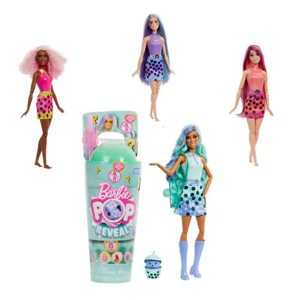 Barbie Pop Reveal Muñeca Boba Tea Sorpresa ofrece una experiencia de juego muy emocionante con sorpresas increíbles en cada caja. Abre el paquete y despega la cubierta de la taza para revelar una muñeca Barbie con aroma a té taro además de encontrar aún más sorpresas. Cada muñeca se vende por separado y está sujeta a disponibilidad. La muñeca no se puede mantener de pie por sí sola. Los colores y las decoraciones pueden variar. DIVERSIÓN SIN FIN. Descubre la magia de Barbie Pop Reveal Muñeca Boba Tea Sorpresa. Con 8 sorpresas en un solo juguete, esta experiencia sensorial comienza al abrir la caja con la temática té de burbujas. ¡Diviértete con este emocionante juego! FACTOR SORPRESA. Desenrosca la tapa con el slime, utiliza el popote para atravesar la cubierta y descubre las sorpresas. Los juguetes para niño y juguetes para niñas de Mattel son el regalo ideal para fans, coleccionistas y pequeños de 3 años en adelante BOBA TEA POP REVEAL BARBIE. Abre el paquete y despega la cubierta de la taza para revelar una muñeca Barbie con aroma a té taro. Su cabello largo y vibrante con mechas azules y moradas complementan su encantadora manera de posar ACCESORIOS EXTRA. Encuentra los cubitos de hielo que se abren y muestran una falda colorida y un par de zapatos. Explora las bolsitas misteriosas para encontrar un bolso lindo, una mascota suave y un accesorio para mascotas con temática de bebida MÁS QUE UNA MUÑECA. Desde 1959 Barbie nos ha demostrado que todo es posible. Con 250 carreras y contando, ha empoderado a niñas y niños para que descubran su voz, tomen acción en el mundo, le den vida a sus sueños y alcancen su potencial ilimitado