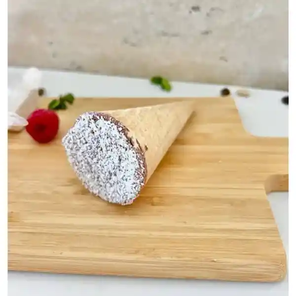 Barquillo con leche entera, chocolate y coco.