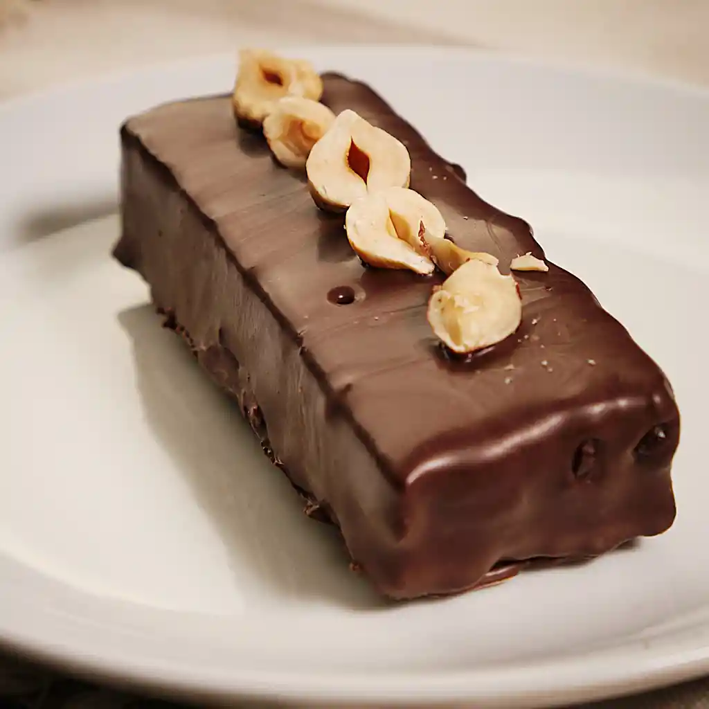 Deliciosa Barrita con galleta de harina de almendras, cacao y avena, rellena de mantequilla de avellana europea y syrup de dátiles Segundo relleno de ganache de chocolate 60% cacao sin azúcar. Cubierta con cobertura chocolate 85% cacao sin azúcar Producto sin azúcar añadida, sin harinas refinadas, sin gluten (puede contener trazas), sin lácteos.
