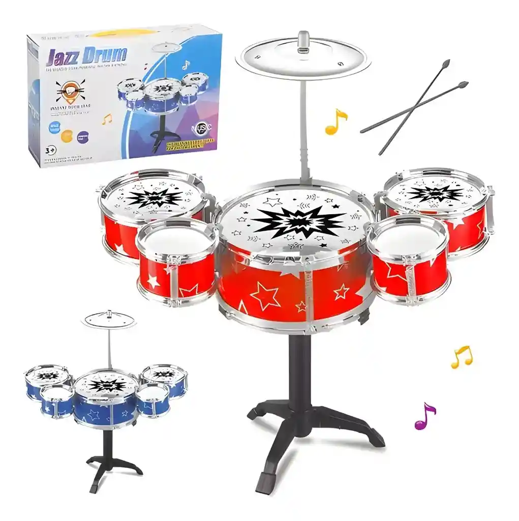 Deja que tus pequeños exploren el mundo de la música con esta batería especialmente diseñada para niños de 3 a 5 años! Ideal para fiestas infantiles y momentos de juego creativo, este set musical estimula las habilidades motoras, la coordinación ojo-mano y la creatividad musical de los niños. Características del Producto: - *Diseño Resistente*: Hecha para soportar el uso intensivo de los más pequeños. - *Diversión Educativa*: Ayuda a los niños a desarrollar su sentido del ritmo y la coordinación. - *Sonido Nítido*: Material de alta calidad que produce un sonido claro y fuerte. - *Fácil de Montar*: Viene con instrucciones simples para ensamblar rápidamente. Especificaciones: - *Material*: Plástico resistente de alta calidad. - *Dimensiones de la batería*: 46 cm de alto x 41 cm de ancho x 24 cm de fondo. - *Incluye*: - 5 tambores - 2 baquetas - 1 platillo - 1 trono de tambor