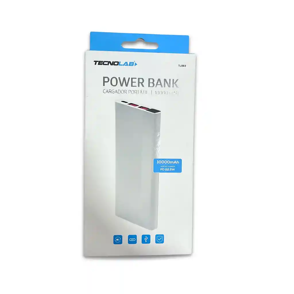 Bateria Externa Powerbank 10.000mAh Blanco. El Powerbank 10.000mAh Tecnolab es la solucion ideal para mantener tus dispositivos siempre cargados mientras te desplazas. Con una capacidad de 10.000mAh, este powerbank asegura multiples cargas para tus dispositivos, garantizando que nunca te quedes sin bateria en momentos criticos. Su diseño compacto y portatil lo hace perfecto para llevarlo en tu bolso o mochila, asegurando que siempre tengas energia adicional a mano. Equipado con tecnologia Power Delivery (PD) de 22.5W, el Powerbank Tecnolab ofrece una carga rapida y eficiente para una amplia gama de dispositivos, incluyendo smartphones, tablets y otros dispositivos compatibles. Su alta potencia asegura una carga rapida, permitiendote ahorrar tiempo y mantener tus dispositivos listos para usar en todo momento. Ademas, cuenta con multiples protecciones integradas contra sobrecalentamiento, sobrevoltaje y cortocircuitos, garantizando una carga segura y confiable. El diseño elegante y robusto del Powerbank 10.000mAh Tecnolab lo convierte en una opcion duradera y estilizada para cualquier usuario. Sus indicadores LED de carga te permiten monitorear facilmente el nivel de bateria restante, asegurando que siempre estes preparado. Con este powerbank, puedes disfrutar de la tranquilidad de saber que tus dispositivos estaran siempre cargados y listos para la accion, sin importar donde te encuentres. Manten la energia a tu alcance con el Powerbank 10.000mAh Tecnolab