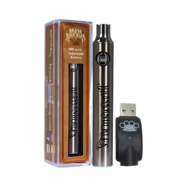 Batería para Cartridge Brass Knuckles Plata de 900 mAh con voltaje variable, precalentamiento y rosca 510. Ideal para cartridges y extracción herbal.