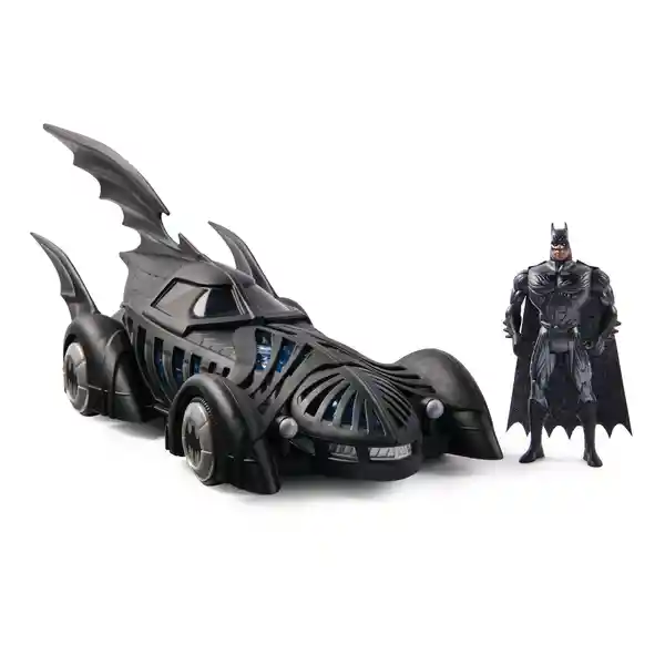 Sumérgete en el Corazón de Ciudad Gótica Con el Set de Colección Batman Forever Batimóvil + Batman Imprescindible Para Los Fans de la Icónica Saga Batman. Este Exclusivo Set Incluye un Impresionante Batimóvil de 50 cm Con un Chasis Translúcido Único Que Muestra su Interior Detallado y un Diseño Fiel a la Película. Acompañado Por Una Figura de Acción Retro de Batman de 10 cm Este Set Rinde Homenaje a la Memorable Interpretación de Val Kilmer Del Caballero Oscuro. El Batimóvil Está Diseñado Para Interactuar a la Perfección Con la Figura Exclusiva de Batman de 10 cm Incluida lo Que Mejora su Valor de Exhibición y Juego.