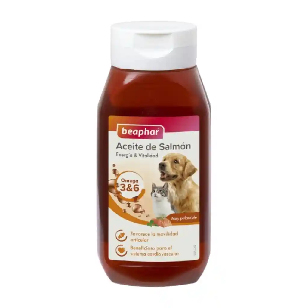 El aceite de salmón de Beaphar es un delicioso suplemento natural apto para perros y gatos, derivado de la pesca sostenible. Es naturalmente rico en aceites omega 6 y omega 3, lo que significa que es una buena fuente de ácidos grasos esenciales como EPA y DHA. El aceite de salmón tiene un efecto beneficioso sobre el sistema cardiovascular y contribuye a la suavidad de las articulaciones. Constituye un aporte energético y mantiene un pelaje y un epidermis en buen estado de salud. Composición: Ingredientes: Aceite de salmón (Omega 6, Omega 3, EPA y DHA) (materia prima para la alimentación de perros y gatos). Análisis: Grasas y aceites brutos: 99% Beneficios: RICO EN ÁCIDOS GRASOS PARA REFORZAR LA SALUD: Favorecen un sistema inmunitario sano y ayuda a mantener una piel sana y un pelo bonito. FAVORECE LA MOVILIDAD ARTICULAR, reduciendo la inflamación. MEJORA EL SISTEMA INMUNITARIO, ayudando a regular su respuesta inmune. CONTRIBUYE AL DESARROLLO DEL CEREBRO Y LA VISIÓN PROPORCIONA UN APORTE ADICIONAL DE ENERGÍA