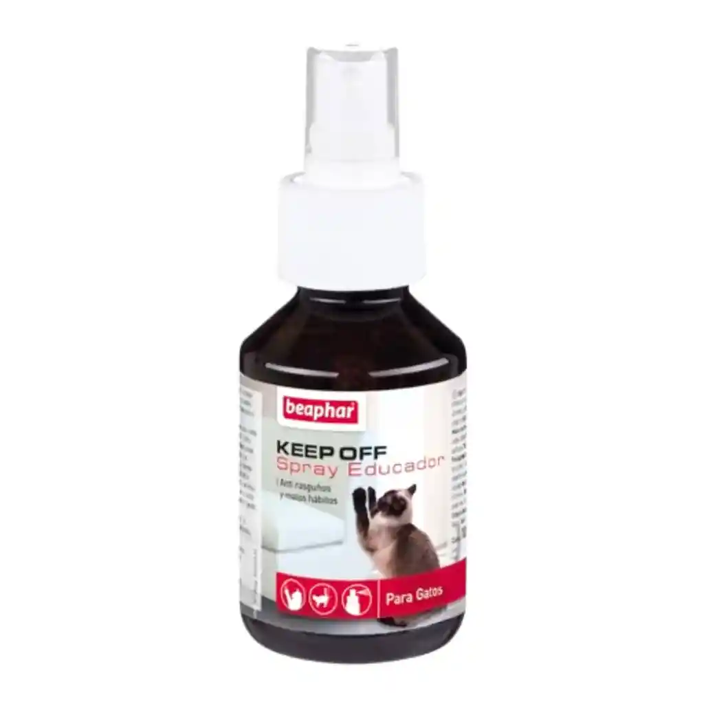 Keep off de Beaphar es un spray educador para gatos que te ayudará a eliminar los malos hábitos y evitará arañazos en muebles, puertas, cortinas, alfombras, zapatos etc. Existen muchas razones por las que los gatos tienen un comportamiento indeseable y es importante tratar la causa del mal comportamiento. Los gatos arañan no sólo para mantenerse entretenidos, sino también para marcar su territorio. Por lo tanto, la necesidad de rascarse es natural para los gatos. Pulverizar diariamente las zonas a proteger a una distancia de 20-30 cm hasta evitar la zona. Consejo: rocía un objeto y colócalo en el lugar que deseas evitar. Composición Ingredientes: Agua, aceite de ricino hidrogenado PEG-40, parfum (0,627%), propilenglicol, benzoato de denatonio, 5-bromo-5-nitro-1,3-dioxano.