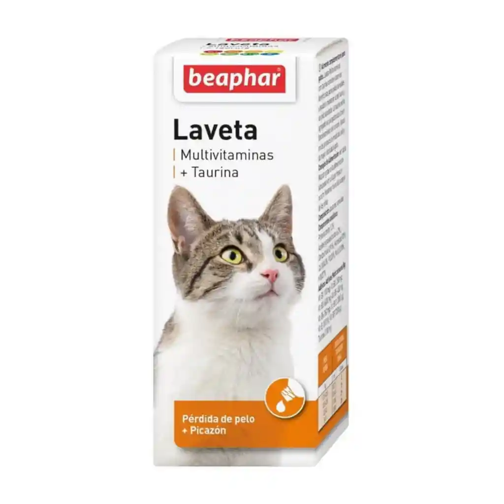 Beaphar Multi-Vit y Taurina, es un suplemento vitamínico para gatos con deficiencias nutricionales, evidenciadas por caída de pelo, pelaje opaco e incoloro. Genera un cambio completo y rápido de pelo. Dejándolo con un nuevo manto luminoso y terso. Beaphar Multi-Vit y Taurina, contiene vitaminas beneficiosas para pieles sensibles y ayudan a mantener la piel sana y un pelo saludable. La taurina se ha agregado ya que ayuda al buen funcionamiento del corazón, en los procesos de muda del pelo y da mayor vitalidad al gato Composición Vit. A, Vit. D3, Vit. E, Vit. B1, Vit. B2, Ác. Pantoténico, Ác. Nicotínico, Vit. B6, Vit. B12, Biotina, Taurina. Vía de administración y dosis Aplique directamente sobre la comida diaria: Gatos 0.1 kg : 2 gotas Gatos 0.1 kg – 0.5 kg : 5 gotas Gatos 0.5 kg – 2.5 kg : 15 gotas Gatos 2.5 kg – 5.0 kg : 25 gotas Gatos 5.0 kg – 9.0 kg : 35 gotas Observaciones Puede aplicar el producto sin limitaciones de uso. No se describen efectos indeseados. Presentación Frasco Gotario de 50 ml en estuche individual.