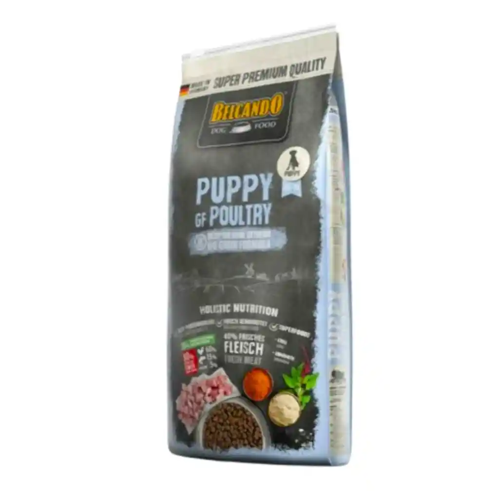PARA CACHORROS DE TODOS LOS TAMAÑOS DE HASTA 12 MESES DE EDAD Materias primas cuidadosamente seleccionadas, sobre todo ave, amaranto y huevo, hacen que BELCANDO®️ Puppy GF Poultry se tolere especialmente bien y sea fácil de digerir. Mucha energía para un crecimiento sano e importantes minerales para la formación de los huesos garantizan un comienzo óptimo en la vida. Cuando se mezcla con agua tibia se forma una sabrosa salsa que anima al perro a comer alimentos sólidos y hace más fácil el destete. ¡Y también le seguirá gustando después! Porcentaje de proteína animal sobre el total: 80% (de carne de ave 60 % , de pescado 15 % , de gelatina 5 %) Para facilitar el cambio a alimentos sólidos, BELCANDO®️ Puppy GF Poultry se puede mezclar con agua y obtener una salsa especial. Mezclar cuidadosamente 3 partes de BELCANDO®️ Puppy GF Poultry con una parte de agua caliente (40-50 ºC) para obtener una apetitosa salsa. Esto estimula a los cachorros a aceptar comida sólida. Si es necesario, más adelante el cachorro se podrá alimentar con BELCANDO®️ Puppy GF Poultry en seco. ANÁLISIS DE LOS COMPONENTES Carne de ave fresca (40 %); proteínas de ave deshidratadas con bajo contenido en cenizas (16 %); amaranto (14%); fécula de patata; harina de guisantes; harina de pescado de agua salada (5 %); grasa de ave; zooplancton marino molido (krill, 2,5 %); gelatina hidrolizada (2,5 %); levadura de cerveza secada (2,5 %); huevo secado; vainas de algarroba, secas; pulpa de remolacha seca, desazucarada; fosfato dicálcico; aceite de salmón; hígado de ave hidrolizada; semillas de chía; cloruro de sodio; cloruro de potasio