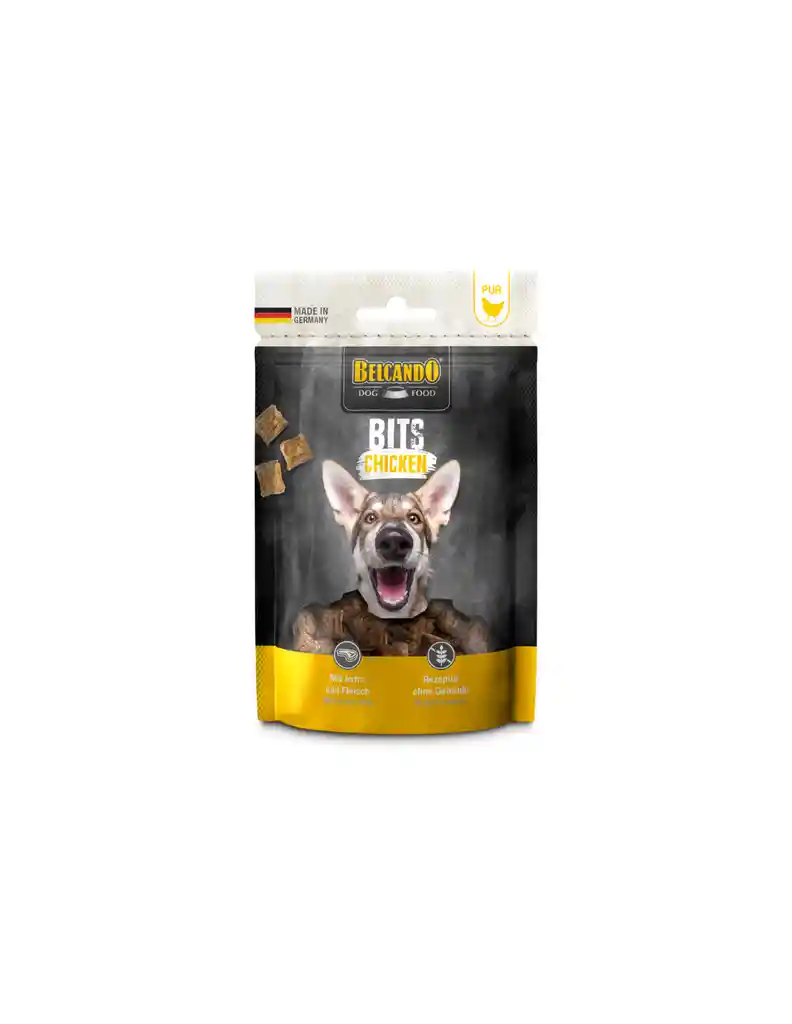Snack monoprotéico de carne de pollo Alto contenido de proteínas, fácil de digerir, muchos nutrientes esenciales, bajo en grasa, o como dirían nuestros amigos de cuatro patas: ¡simplemente delicioso! Perfecto como recompensa o simplemente como un excelente snack entre comidas. Los Bits son naturalmente con extra carne. La receta sin cereales ni azúcar se seca suavemente al aire y utiliza solo una fuente de proteína animal para mayor simplicidad. Formato 90 gr. Ingredientes: Carne y cuellos de pollo (72,5 %); proteína de pollo (16,5 %); glicerina, vegetal (5 %); lignocelulosa (3 %); aceite de colza (1,5 %); minerales secado.