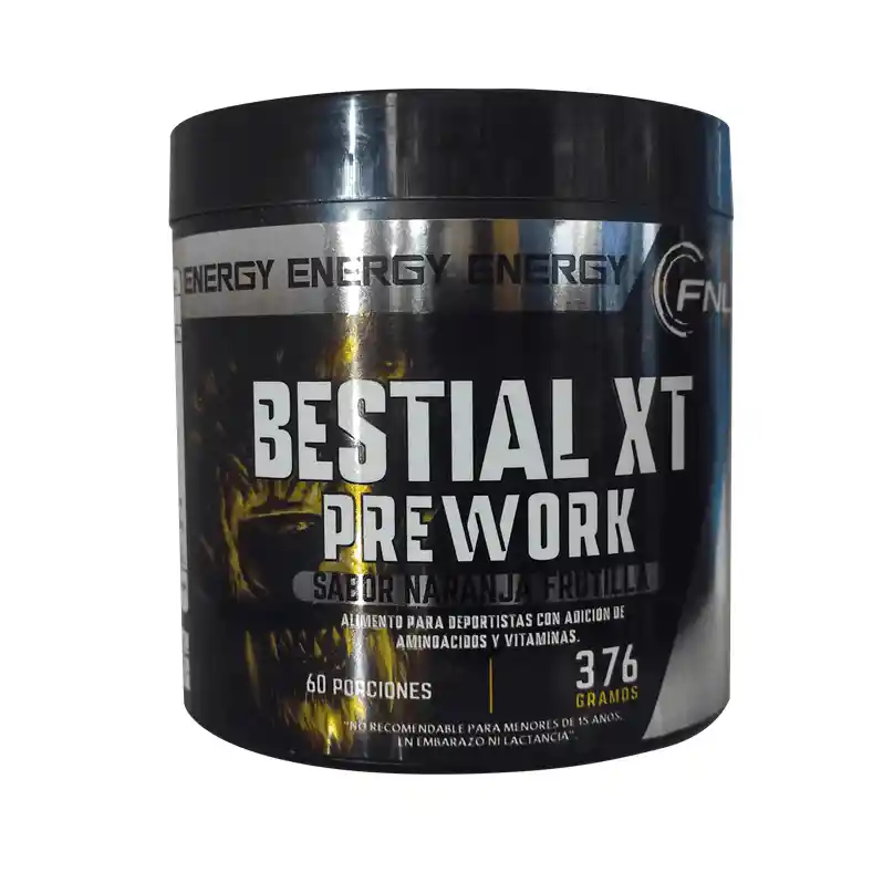Contiene: Beta-alanina, Creatina, L-Glutamina, Taurina, L-Arginina, Cafeína, Vitamina C, Sabor naranja idéntico al natural, Sabor frutilla idéntico al natural, Pimienta cayena, Ácido aspártico, Sucralosa, Ácido cítrico, Vitamina B6, Té verde, Vitamina B12, Vitamina B3, Cacao, Tartraxina