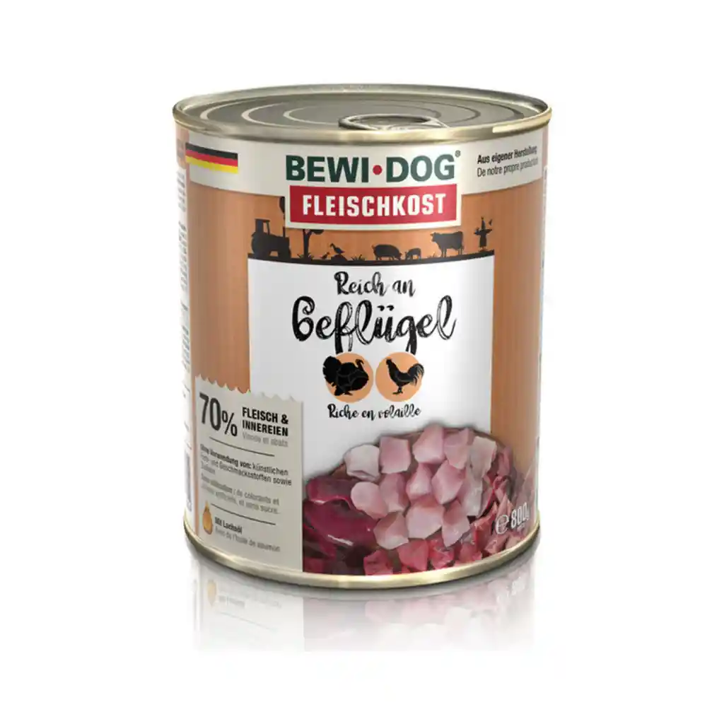 El alimento de carne BEWI DOG® contiene carne de músculo jugosa con una estructura de carne firme. Al igual que a los perros les encanta. Los muchos sabores diferentes proporcionan un cambio bienvenido.