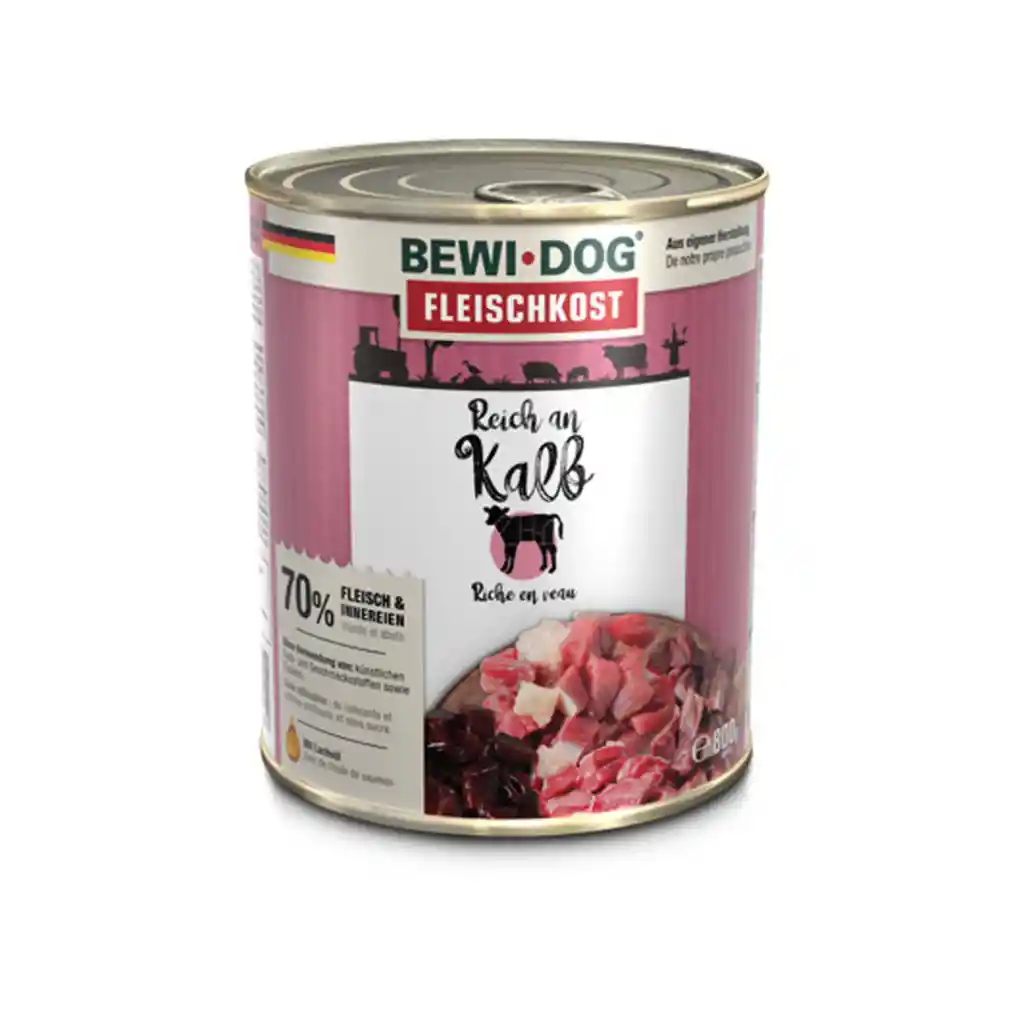 La nueva comida húmeda para perros de BEWI DOG contiene carne jugosa y magra. El sabor de la ternera, tan apreciado por los perros, hace que ningún perro se resista a él. Gracias al aceite de salmón, la piel estará sana y el pelaje brillante y suave. Alimentos elaborados únicamente con productos de primera calidad, sin colorantes ni conservantes artificiales.