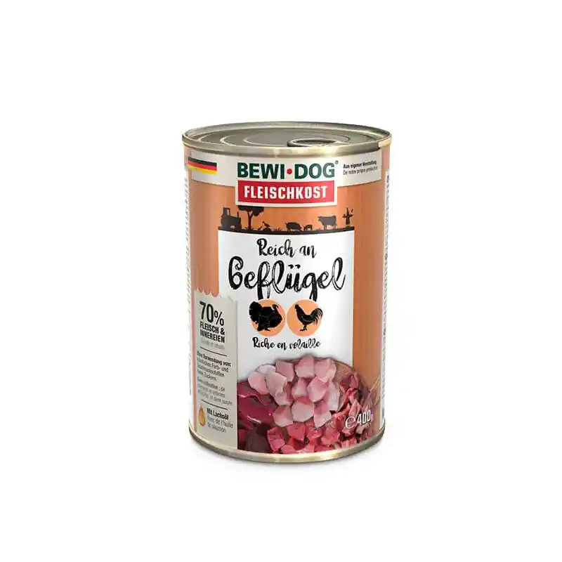 BewiDog Rico en Ave es un alimento húmedo para perros que contiene carne jugosa con una textura firme. Tal como les gusta a los perros. La amplia gama de sabores proporciona una variedad bienvenida. Contiene todas las vitaminas, minerales y oligoelementos importantes para el desarrollo y la alimentación de los perros. Cocinado suavemente.
