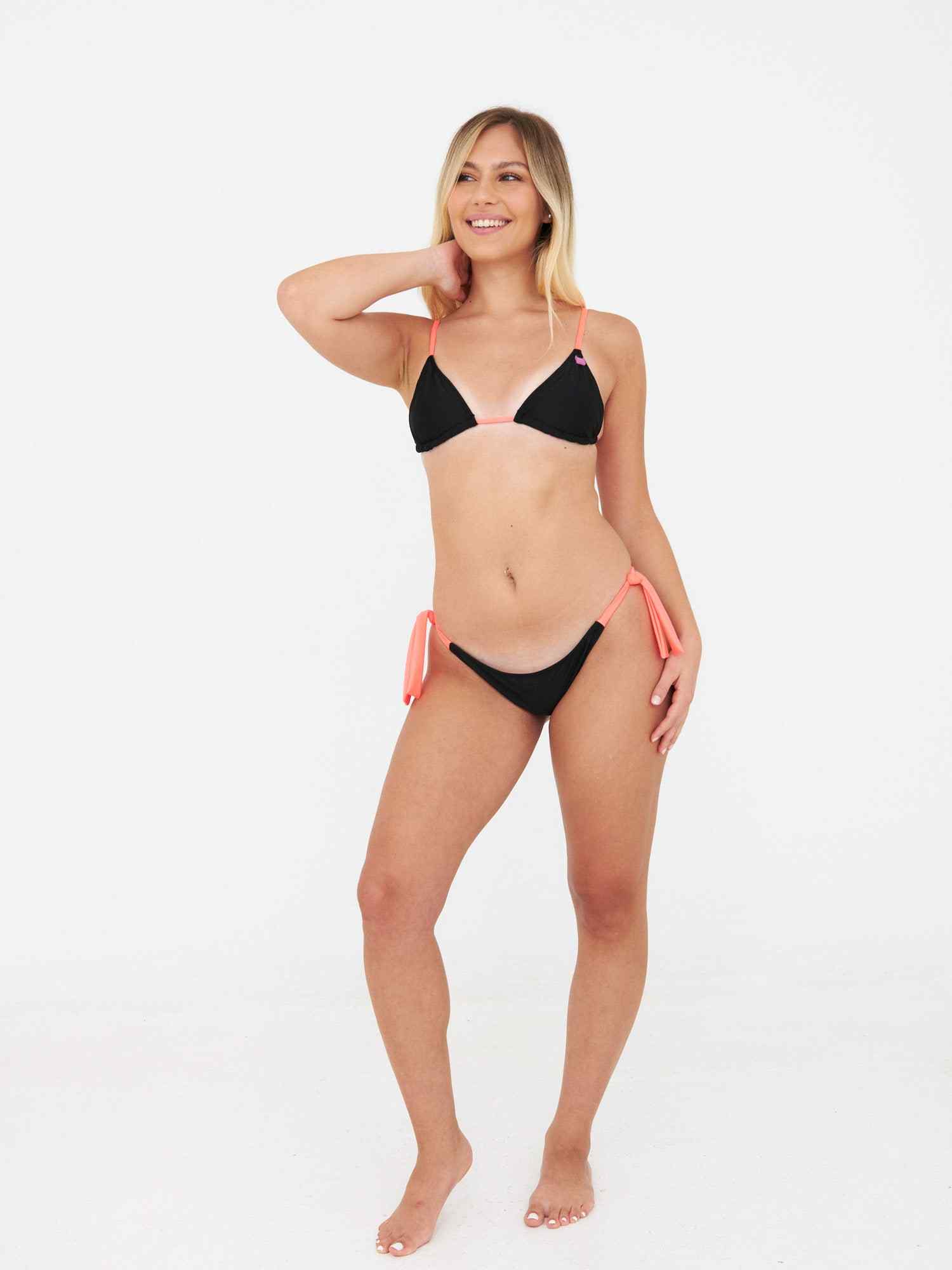 Tipo: Traje de Baño Daikiri de Dos PiezasTela: Liso Solido en NegroParte de Arriba: Tipo Triángulo ,Regulable y con opción de poner almohadillasParte de Abajo: Tipo Clásico y AmarrasDestaca: Gran Ajustabilidad para que te Quede Perfecto!