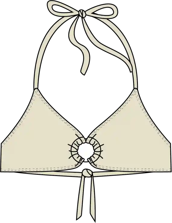Top de bikini tipo triangulo con argolla en el centro, sin barba, especialmente pensado para copas B o C, ya que las tiras del costado son anchas lo que bridan mayor contencion que un triangulo normal, este modelo cuenta con amarras en el contorno y al cuello para un mejor ajuste. Samia ofrece venta de prendas por separado lo que permite tener un traje de baño que se adapta perfectamente a la forma de tu cuerpo al elegir la talla correcta para la parte superior e inferior. Esta modelo tiene un contorno de busto de 85 cm y bajo busto de 71 cm está usando una talla L - Producto fabricado con materiales de excelente calidad - Diseños exclusivos - Lycra con protección UV + 50 - Samia especialistas en trajes de baño. Instrucciones de lavado Lavar a máquina 40C - no usar blanqueadores a base de cloro - máxima temperatura de planchado 110C. Articulo apto para lavado en seco - evitar retorcer en exceso - lavar lo antes posible después de usar - secar colgado. Tela resistente al cloro - Anti Piling - Suave - resistente a cremas y aceites - Forro de excelente calidad.
