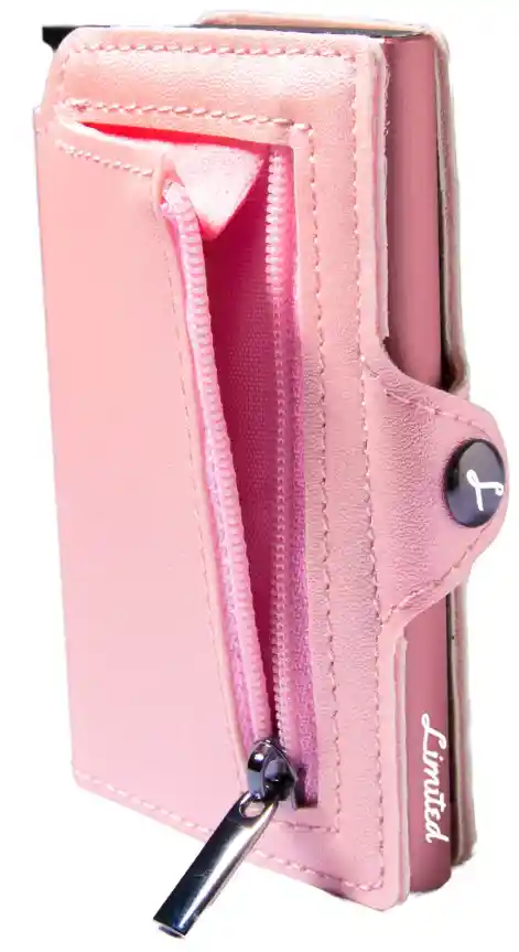 Billetera de cuero PU con tarjetero metálico anti clonación y monedero para que guardes todo en un mismo lugar. Hasta 12 tarjetas. 4 tarjetas con relieve o 6 tarjetas lisas en el interior metálico y de 4 a 6 tarjetas en los bolsillos interiores.