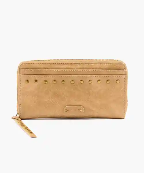 Billetera Grande Con Tachas. En el Interior Tiene un Bolsillo Con Cierre y 10 Compartimientos Para Guardar Tarjetas o Documentos. En el Exterior Tiene Bolsillos Abiertos.