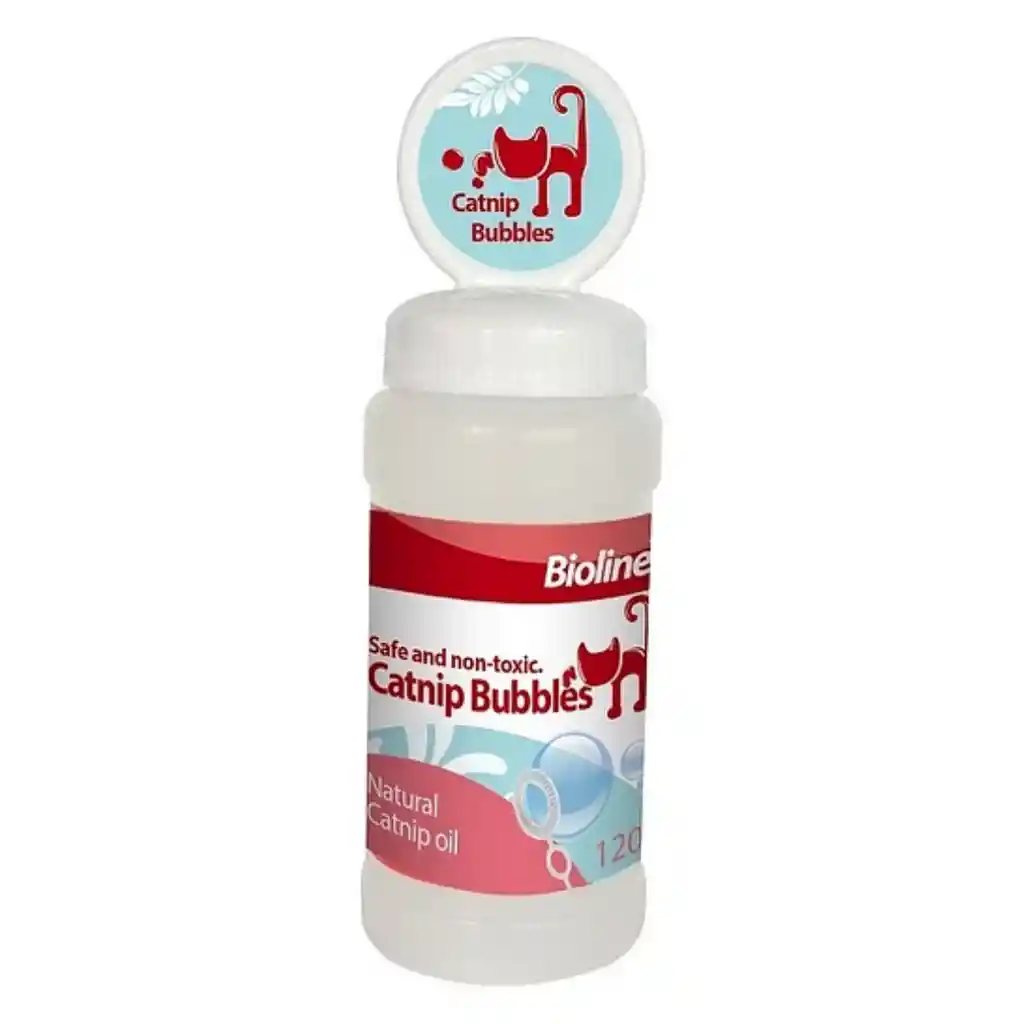 El Catnip Bubbles Bioline ofrece una forma divertida de jugar con tu gato. El Catnip Bubbles Bioline está hecho con hierba gatera fresca y verde, también conocida como catnip. Esta fórmula segura crea burbujas de catnip para que tu gato la persiga y disfrute. La tapa viene con el aro donde se sopla y salen las burbujas. Es muy importante jugar con tu gato, sea cual sea su edad. Para un gato el juego es muy beneficioso para su salud, ya que lo anima a estar activo, a permanecer ágil y a mantener una condición física adecuada. Sobre todo, el juego puede incitar a los gatos a expresar sus instintos naturales de cazador. La hierba gatera es una hierba natural. A los gatos se les hace irresistible esta planta. Comen sus flores, olisquean, mastican y se frotan en sus hojas volviendo una y otra vez por una dosis de su embriagadora esencia. Los aceites aromáticos de esta planta hacen que los gatos que la ingieren se comporten en un principio de manera muy juguetona. La línea de Bioline ofrece una completa gama de productos de aseo, herramientas, juguetes y accesorios para el cuidado de tu gatito.