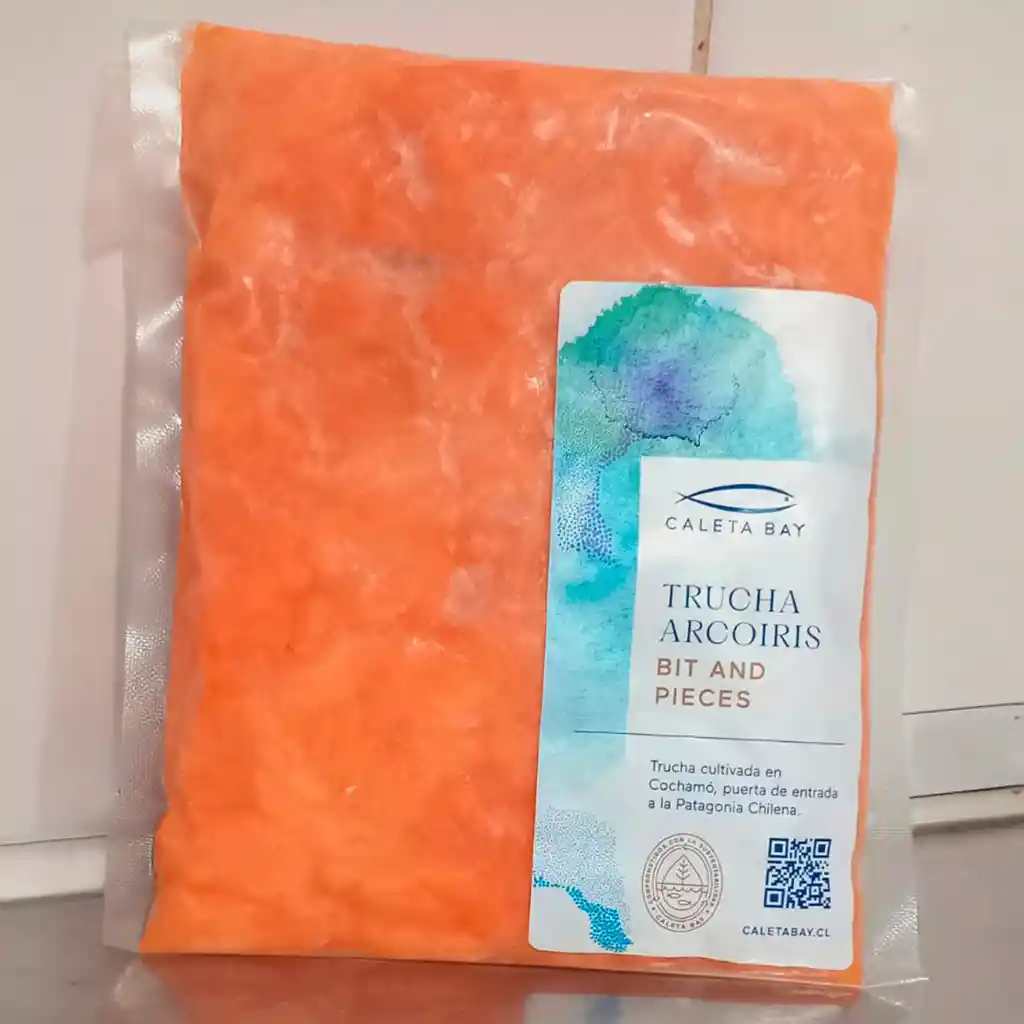 <p class="p1">El Bit and Pieces Trucha de 500 grs. es una opción versátil y práctica que ofrece trozos de trucha arcoíris de alta calidad, perfectos para diversas preparaciones culinarias. Su frescura y sabor hacen de este producto una excelente alternativa para recetas rápidas y nutritivas.<b></b></p> <p class="p2"><br></p> <p class="p1"><b>Características:</b><b></b></p> <p class="p3">Trozos de trucha sin piel, congelados y envasados al vacío para preservar su frescura y textura. Presentado en un empaque de 500 grs., ideal para múltiples preparaciones.</p> <p class="p2"><br></p> <p class="p1"><b>Sugerencias de Preparación:</b><b></b></p> <p class="p3">Sella los trozos en sartén con ajo y hierbas frescas para un plato sencillo y delicioso. También son ideales para preparar tacos con vegetales y una salsa cítrica o para incluir en bowls de arroz con palta y semillas de sésamo. Para un appetizer gourmet, sírvelos sobre tostadas con queso crema y eneldo.</p> <p class="p2"><br></p> <p class="p1"><b>Beneficios:</b><b></b></p> <p class="p3">Rico en proteínas de alta calidad, omega-3 y vitaminas esenciales, es una excelente opción para una alimentación saludable. Su presentación en trozos facilita su uso en recetas diarias, reduciendo desperdicios y optimizando el tiempo en la cocina.</p>