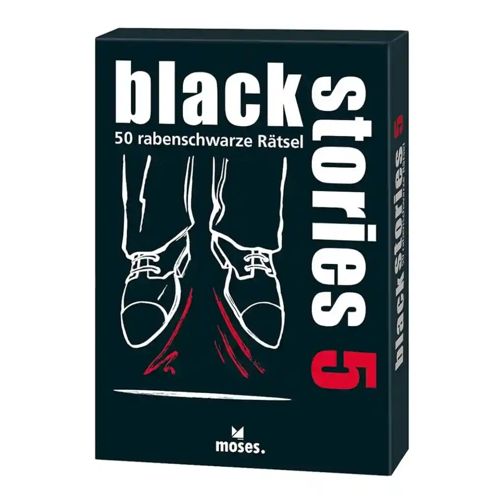 BLACK STORIES 5. " Choca esos 5! Como es que una tarde de barbacoa con amigos le cuesta la vida a una joven pareja? Y por que la mujer solo se tranquiliza cuando descubre las salpicaduras de sangre en el suelo? Una vez mas, hay que investigar una serie de locos crimenes, perfidas intrigas y extranos accidentes. Pregunta a pregunta, lograras averiguar la espeluznante solucion de cada oscuro misterio."
