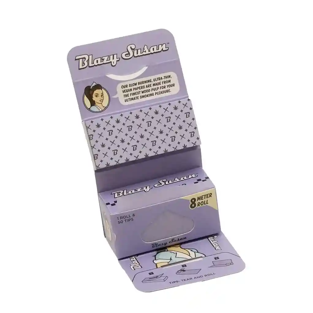 Blazy Susan Rollo Purple + Boquillas — papel morado sin blanquear, combustión lenta y armado fácil con filtros incluidos.