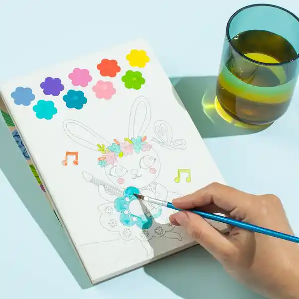de 20 Hojas Papel Con 20 Ilustraciones Distintas Para Colorear. Incluye Modo de Uso. Incluye: 1 Pincel y 9 Tintas de Acuarela Por Cada Hoja.