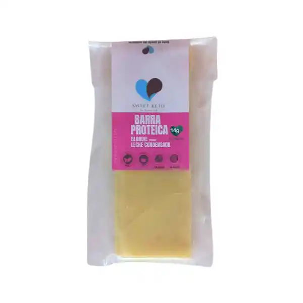 Bizcocho keto proteico relleno con leche condensada y cubierto de chocolate blanco. Keto, proteico, sin gluten y sin azúcar.