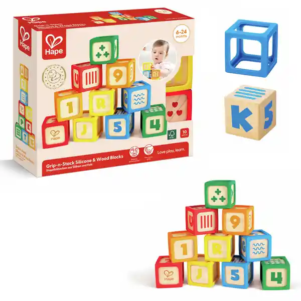 10 bloques de madera con letras, números y patrones para divertidas experiencias de aprendizaje temprano. Fomenta la creatividad y el aprendizaje temprano mediante el juego atractivo. Desarrolla habilidades motoras, coordinación mano-ojo y creatividad a través del juego interactivo. Los bordes de silicona blanda proporcionan un entorno de juego seguro y tranquilo para los niños pequeños. Bloques ABC ¡Transforma el tiempo de juego en diversión educativa con nuestro juego de bloques de construcción de madera de 10 piezas! Diseñados con suaves bordes de silicona y llamativos colores, estos bloques fomentan la creatividad, las habilidades motoras y el aprendizaje temprano, a la vez que mantienen el tiempo de juego seguro y lleno de descubrimientos. Perfectos para tu pequeño explorador.