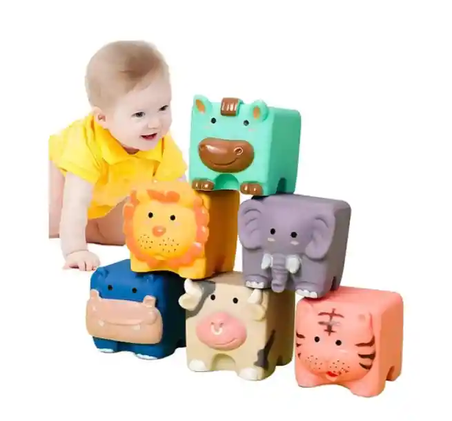 Juguetes seguros para bebés recién nacidos 0-3-6-9-7-8-12-18 y mayores: hecho de material de silicona de grado alimenticio, este juego de bloques de construcción para bebés no solo no es tóxico, libre de BPA, sino que también es fácil de limpiar, mantiene los juguetes favoritos de tu bebé limpios e higiénicos. Un juego de bloques para bebé incluye 6 bloques. Cada bloque de apilamiento para bebés tiene un animal en relieve, forma, fruta, números arábigos y patrones geométricos en los lados. * Bloques neutros multiusos para bebés: es suave, masticable y perfecto para el bebé que acaba de obtener sus primeros dientes. También se puede utilizar como un juguete de baño para bebés, que puede flotar en el agua, sumergirse bajo el agua, apretar para rociar agua. Esto puede hacer que el bebé disfrute de la hora del baño! También es muy ligero. Puedes dejar que tu bebé se apile y lo derrique. Bloques de aprendizaje para bebés. El bebé puede aprender formas, números y patrones geométricos conectándose y tocando. * Bloques de apilamiento duraderos para bebés y niños pequeños: la mayoría de los bloques de construcción blandos están hechos para atender a bebés o niños pequeños. Lo que significa que a medida que su bebé crece, lo más probable es que necesite comprar otro conjunto. No es el caso de estos bloques. Estos bloques están destinados a crecer con su bebé. Está bien formado, tamaño adecuado, puede hacer un sonido atractivo para apretar con un hermoso color, a medida que su bebé crece, pueden aprender números, coincidir con las formas, reconocer los animales y la fruta.