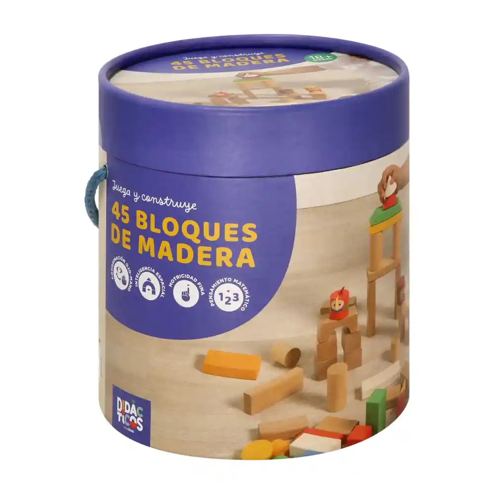 Set Contiene 45 Piezas. De Construcción de Madera Didácticos. Ideal Para Mayores de 18 Meses.