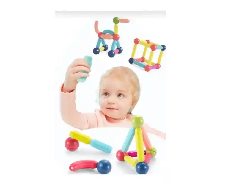 ALTA CALIDAD: Las 25 piezas de construcción magnéticas tienen altos estándares de calidad de seguridad y durabilidad. El juego consta de bolas de metal (bolas de aproximadamente 3,5 centímetros Además incluye un manual de guía MATERIAL SÚPER SEGURO: El juego de barras de construcción magnéticas está hecho de plástico ABS de alta calidad. Cada caja lo que las hace seguras para el uso adecuado de este juguete. FÁCIL DE CONECTAR Y DESCONECTAR: Los niños se sentirán atraídos por el proceso táctil de hacer clic en las barras y las bolas. Implica principios de diseño e imanes que permiten a los niños descubrir cosas maravillosas. Utiliza imanes para conectar las diversas formas: bolas, medialunas y secciones rectas para diseñar objetos. Ayuda a cultivar el pensamiento y la capacidad cognitiva de los niños.