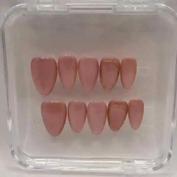 Uñas hechas a mano en tonos rosa jelly con efecto glossy intenso y textura cristalina. Forma:Almendra, Talla: M Kit Incluye: 10 uñas, 24 stickers, lima, palo de cuticula, alcohol pad. 100% veganas, libres de crueldad animal, listas en 10min y duran hasta 2 semanas.