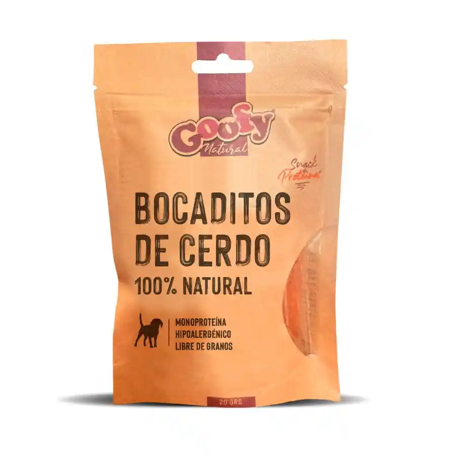 Sabroso snack de carne de cerdo liofilizados 100% natural. No contienen cereales, colorantes, conservantes, aromas ni azúcar