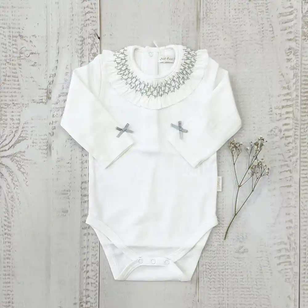 Body Ariel Smock Gris Talla 9/12 Meses