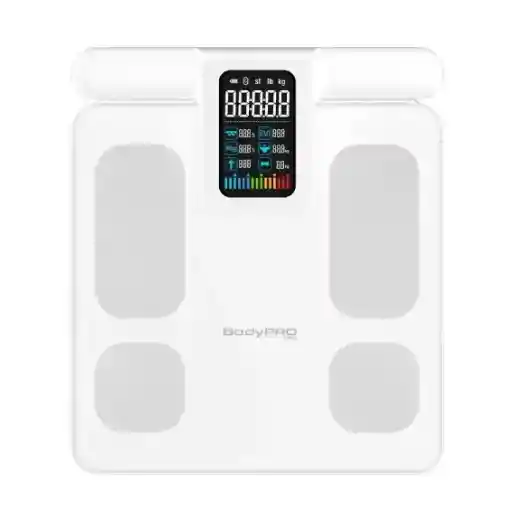 Controla tu salud con la BodyPro GO Smart Scale, una báscula inteligente que mide 28 indicadores corporales con tecnología de doble frecuencia, 8 sensores de alta precisión, mango retráctil y una App gratuita para análisis detallado. Diseño moderno y premium.