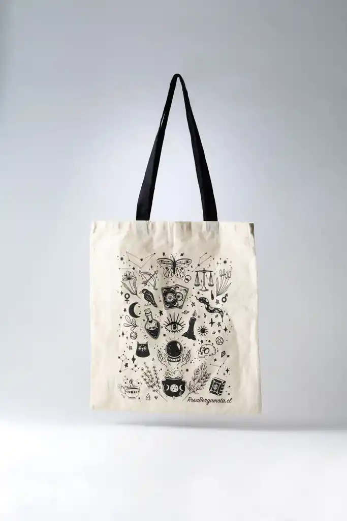 Bolsa de algodón con manillas planas de algodón negro. Presentación minimalista y natural. Bolsa lavable, reutilizable y 100% biodegradable. El algodón es una de las fibras naturales más utilizadas en productos textiles, al lavarse puede reducir un poco su tamaño.