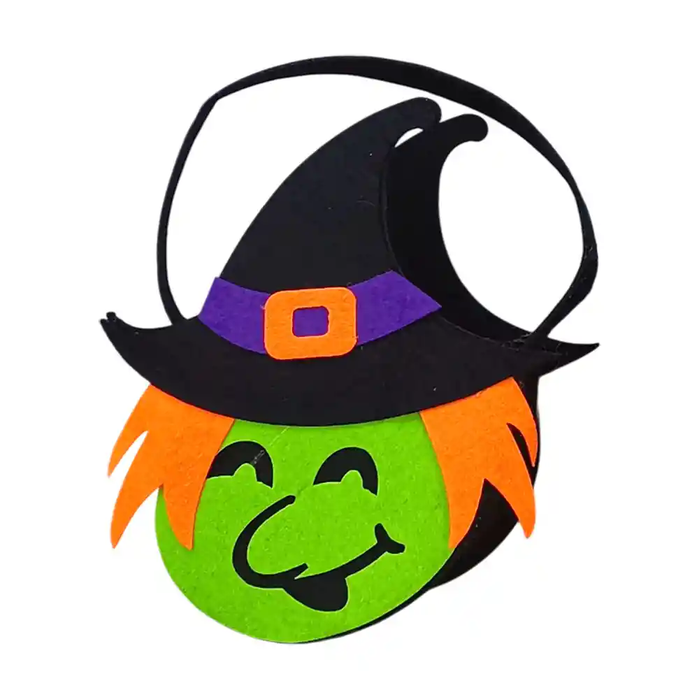 ¡Haz que la entrega de dulces sea parte de la diversión! Esta adorable bolsa de fieltro con diseño de bruja es perfecta para tus fiestas de Halloween, ideal para que los niños recojan golosinas o como souvenir temático para tus invitados. Colorida y temáticaCon detalles que evocan la magia y el misterio de Halloween, esta bolsa de fieltro añade un toque encantador a cualquier celebración. Su diseño de bruja la hace divertida y llamativa, ideal para todos los fans de la temporada. Práctica y resistenteFabricada en fieltro de buena calidad, ligera y resistente, perfecta para contener dulces, pequeños juguetes o recuerdos. Beneficios Diseño encantador y temático de bruja Ideal para fiestas, dulces o souvenirs Material duradero y seguro Tamaño cómodo para niños y adultos Detalles técnicos Cantidad: 1 unidadMaterial: FieltroMedida: 17 x 17 x 7 cm Haz tus fiestas de Halloween más divertidas con esta bolsa dulce temática! PÃdela ahora y recÃbela en la puerta de tu casa. 🕸ï¸ðŸ¬ðŸ‘»
