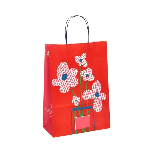 Blanco 100 g Con Diseño Impreso y Asas de Papel Retorcido. Tiene un Tamaño de 22 x 10 x 30 cm.