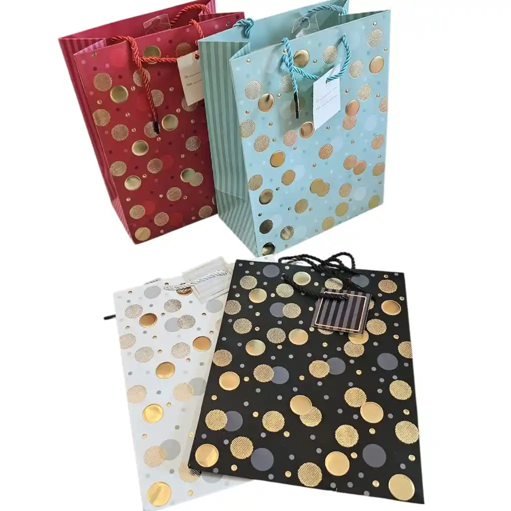 Bolsa De Regalo 18x23x10cm CIRCULOS DORADOS FOIL DISEÑOS ALEATORIO FOTOS REALES