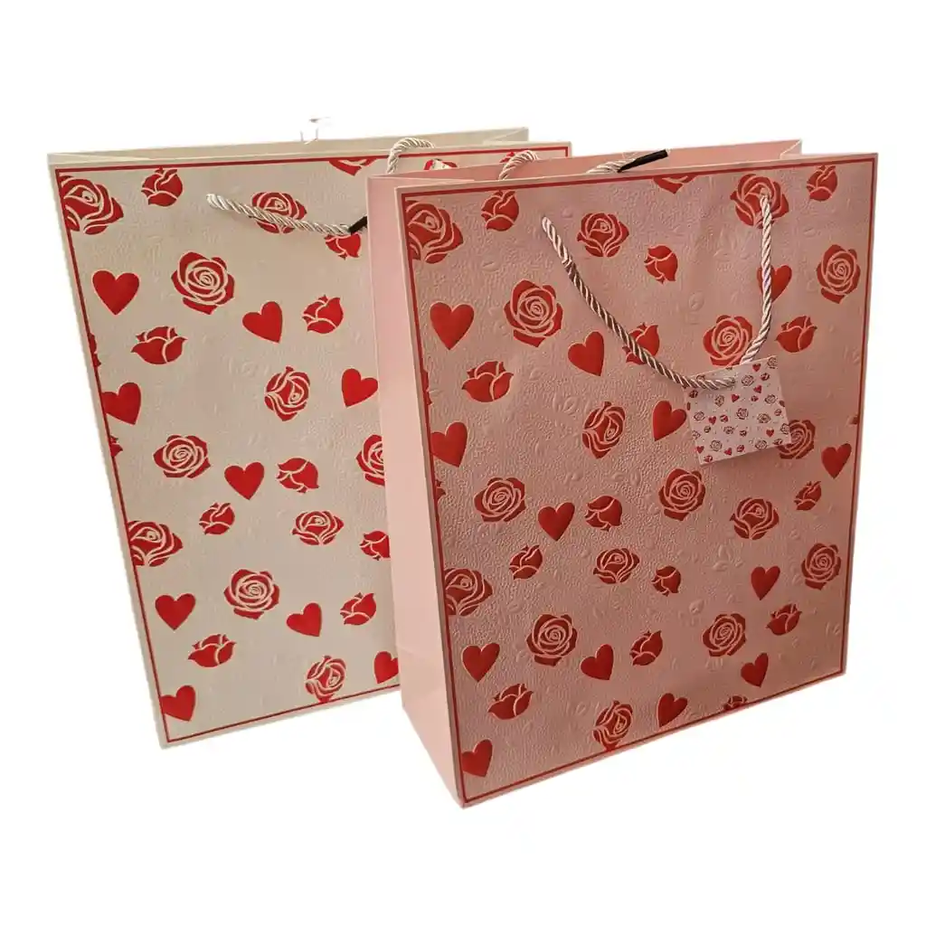 Bolsa de Regalo Premium: Rosa Romántico con Relieve Eleva el nivel de tus obsequios con nuestra Bolsa de Regalo Rosa con Relieve de Corazón. Este modelo combina un tamaño generoso con una textura de alta gama, ideal para quienes buscan un empaque que transmita amor y cuidado en cada detalle. ✨ Puntos Clave del Diseño Textura con Relieve (Embossed): No es solo una impresión; la bolsa cuenta con un grabado en relieve que resalta la figura del corazón, aportando profundidad y una sensación de lujo al tacto. Tono Rosa Elegante: Un color vibrante pero sofisticado que se adapta tanto a regalos románticos como a detalles para amigas, madres o pareja. Tamaño Amplio (26x32 cm): Sus dimensiones permiten guardar una gran variedad de objetos, desde prendas de vestir y carteras hasta sets de belleza completos o cajas de zapatos medianas. Construcción Reforzada: Base ancha y papel de gran espesor para asegurar que el regalo se mantenga estable y la bolsa no pierda su forma elegante. 🎁 Perfecta para Ocasiones Especiales: Aniversarios y San Valentín: El relieve de corazón es el símbolo máximo del romance. Día de la Madre: Un empaque dulce y distinguido que demuestra dedicación. Regalos de Cumpleaños: Para esa persona que ama el color rosa y los detalles femeninos. Compras de Boutique: Si tienes un negocio, es el empaque ideal para entregar productos premium.