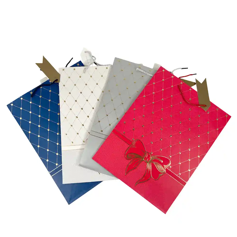 📋 Detalles técnicos Tipo de producto: Bolsa de regalo de papel Modelo: Humita Coquett Medidas: 30 x 40 cm aprox. Cantidad: 1 unidad Colores: Surtidos (se envía un color al azar según disponibilidad) Uso recomendado: Empaque de regalos para distintas celebraciones