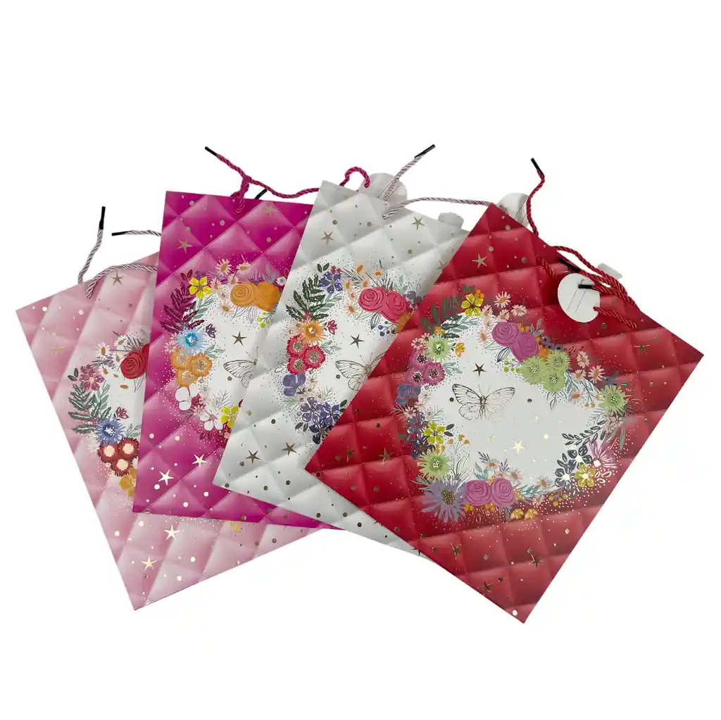 📋 Detalles técnicos Tipo de producto: Bolsa de regalo Modelo: Mariposa Floreado Medidas: 26 x 32 cm aprox. Cantidad: 1 unidad Colores: Surtidos (se envía un color al azar según disponibilidad) Uso recomendado: Empaque de regalos para distintas celebraciones