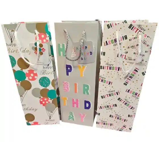 Bolsa De Regalo Para Botellla 9x9.5x32cm Diseño Feliz Cumpleaños