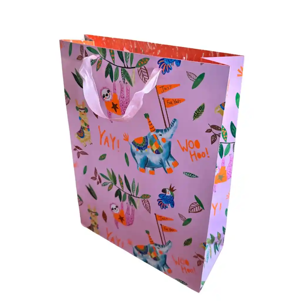 Bolsa de regalo talla L, animales en fondo rosado. 31x42cm