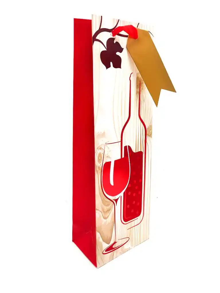 Bolsa de Regalo Vino Wine Metallic, viene con detalles rojo metalizados, medidas 12.7 x 36 Cm (vienen en diferentes modelos se enviara al azar de acuerdo al stock de la tienda)