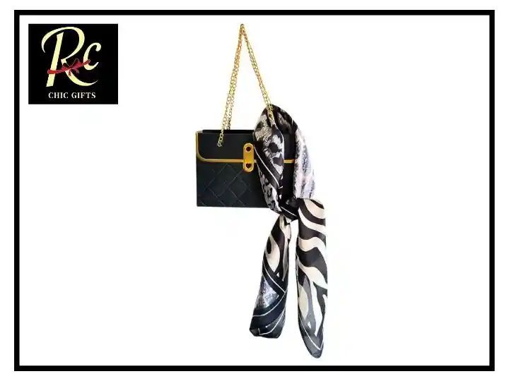 "Impacto visual y elegancia lista para regalar. Este set incluye una bolsa estilo cartera negra con cadena dorada, acompañada de un pañuelo con diseño animal print, que fusiona patrones de cebra y manchas de tigre en tonos negro, gris y blanco. La combinación transmite fuerza, sofisticación y estilo urbano, ideal para quienes buscan un detalle audaz y bien presentado. Ambos productos van incluidos, como un regalo listo para entregar, con sello de distinción. Disponible en Regalos Chic, expertos en accesorios exclusivos y personalizados. Bolsa negra con cadena dorada Pañuelo animal print mujer Pañuelo cebra y tigre Set de accesorios de moda Regalo listo para entregar Accesorios elegantes mujer Regalos Chic Chile"