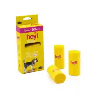 Bolsa para fecas Hey!, 4 rollos de 15 bolsas 33X23 cm Las bolsas sanitarias HEY! están diseñadas para entregar una buena calidad a un precio económico. No se utiliza: tintas, aromatizantes y cono central de papel para optimizar su proceso de oxobiodegradación del producto. Cada caja incluye 4 rollos y cada rollo contiene 15 bolsas de 33×23 cms. Prepicado para fácil corte de cada bolsa. A prueba de fugas. Extra resistente. Cada rollo tiene 15 bolsas para facilitar su transporte. Sin perfume para los amigos peludos sensibles. Cuenta con tecnología EPI. ¡Prefiere productos reciclables!