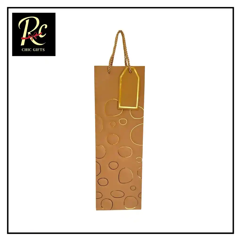 "¡Envuelve tus obsequios con el máximo resplandor! En Regalos Chic, te presentamos nuestra deslumbrante Bolsa de Regalo para Botellas Dorada, la elección perfecta para hacer que cualquier botella de vino, licor o espumante se convierta en un presente verdaderamente inolvidable y lleno de glamour. ¿Por qué nuestra Bolsa de Regalo Dorada es el toque de distinción que tus obsequios necesitan? Lujo y Brillo Inconfundible: El vibrante tono dorado de esta bolsa, realzado por su patrón de círculos sutilmente texturizados, irradia opulencia y celebra cada momento especial. Es el envoltorio ideal para realzar el valor y la sofisticación de cualquier botella que desees obsequiar. Presentación Exquisita Garantizada: Equipada con asas de cuerda trenzada en un tono coordinado y una etiqueta colgante dorada lista para personalizar tu mensaje, esta bolsa asegura que tu regalo no solo luzca, sino que impresione desde el primer contacto. Diseño Sofisticado y Festivo: Cada detalle ha sido pensado para aportar un aire de festividad y elegancia. El brillo dorado añade una atmósfera de celebración y distinción, haciendo de esta bolsa el complemento perfecto para eventos de alto nivel. Ajuste Ideal para Botellas Estándar: Perfectamente diseñada para contener la mayoría de las botellas estándar de vino, champagne, licores finos, aceites especiales o incluso jarrones delgados. Una solución de empaque versátil y siempre impactante. Calidad Excepcional y Resistencia: Fabricada con materiales robustos y duraderos, esta bolsa no solo destaca por su belleza, sino también por su funcionalidad, ofreciendo seguridad y protección a tu preciado regalo hasta el momento de ser entregado. Esta bolsa es más que un simple envoltorio; es una invitación al lujo y la celebración, un preludio a un momento dorado. Es el complemento ideal para: Grandes Celebraciones: Bodas de oro, aniversarios, cumpleaños significativos, fiestas de fin de año y eventos de gala. Regalos Premium y Corporativos: Proyecta profesionalismo y un gusto impecable al obsequiar a clientes, socios o empleados. Detalles de Agradecimiento Exclusivos: Dale un valor añadido a cualquier gesto de gratitud con un toque dorado. Cualquier Ocasión que Merece Ser Celebrada con Opulencia: Desde cenas importantes hasta grandes eventos sociales. ¡No dejes que tu regalo pase desapercibido! Adquiere nuestra Bolsa de Regalo para Botellas Dorada y convierte cada obsequio en una experiencia de lujo inolvidable. ¡Encuéntrala exclusivamente en Regalos Chic y haz que tus celebraciones brillen con luz propia! Bolsa para botella, bolsa de regalo vino, bolsa de licor, empaque dorado, bolsa elegante, presentación botella, Regalos Chic, packaging lujo, bolsa champagne, regalo festivo, accesorio de regalo, bolsa con diseño, lujo en regalos, bolsa para obsequios, celebración, fiesta, brindis, botella de regalo, bolsa de lujo dorada, empaque premium."
