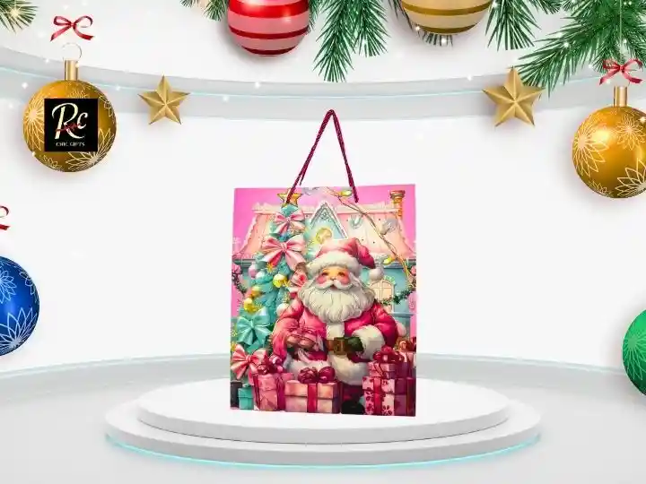 Bolsa Regalo Grande Papá Noel Rosa Pastel 26x32cm Pink Christmas - Regalos Chic